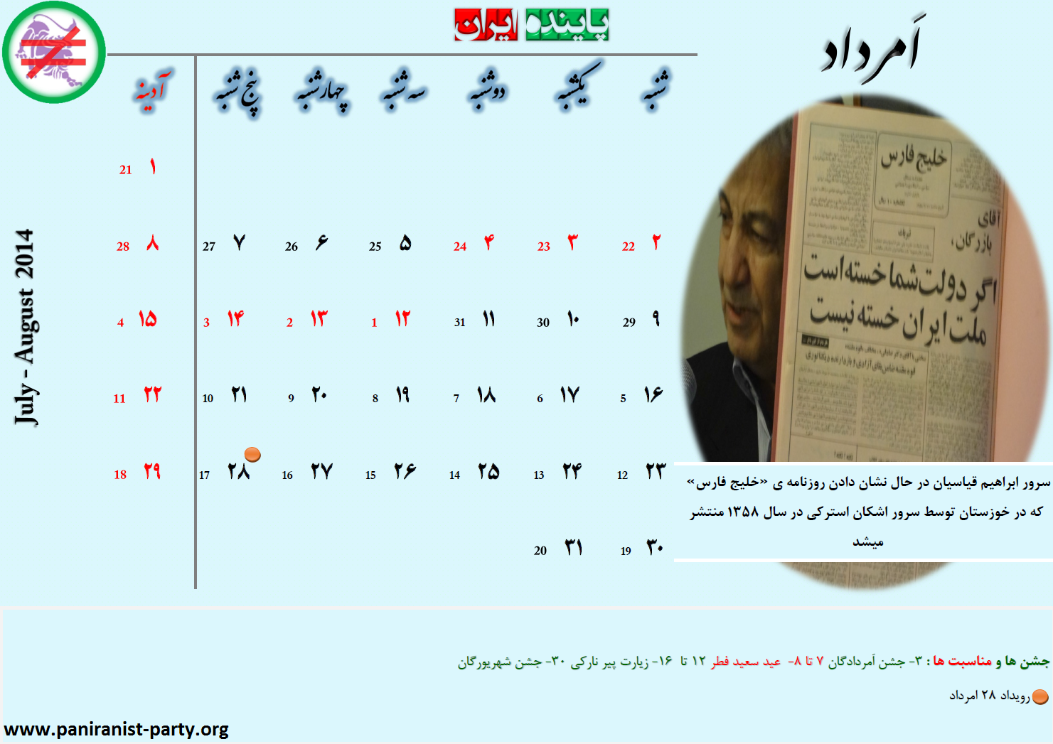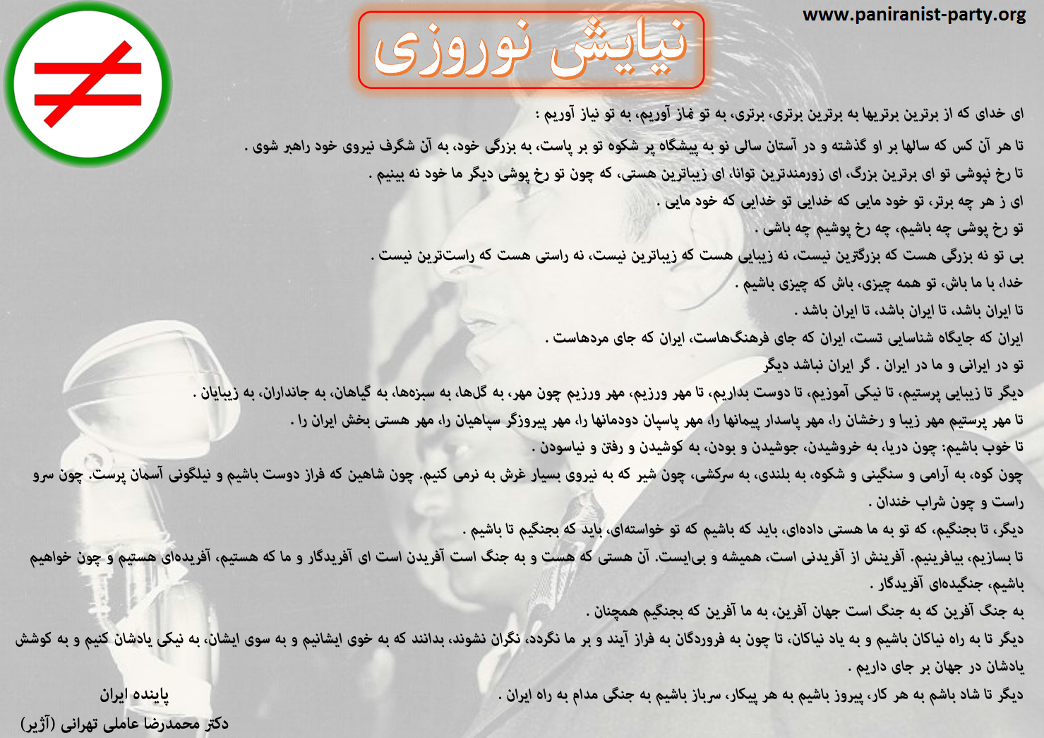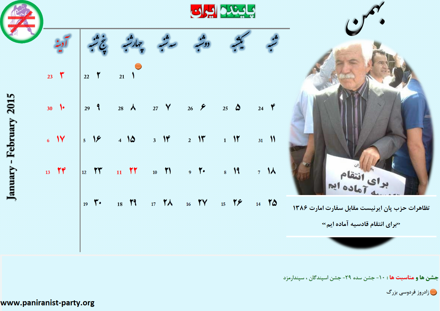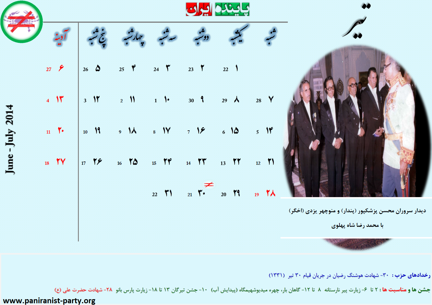 نوروز امسال نیز همچون سال گذشته جوانان آرمان خواه و خوش ذوق پان ایرانیست دست به کار شدند و سالنمای پان ایرانیستی سال 1393 را تهیه کردند. از ویژگی های این سالنما همراه داشتن مناسبت های پان ایرانیستی و ملی در کنار مناسبت های تقویم رسمی کشور است. این سالنما همچنین مزین به تصاویر پان ایرانیستی، از گذشته تا به امروز است. این سالنما را می توانید در فرمت png (عکس) دریافت کنید. برای دیدن تصاویر در سایز بزرگ و کیفیت بالا روی آن ها کلیک کنید. |